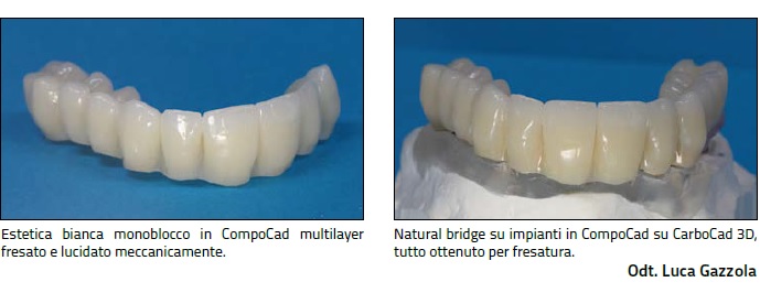 COMPOCAD È UN MATERIALE ESTETICO MULTILAYER IDONEO AD ESSERE FRESATO SIA COME CORONE SINGOLE CHE PONTI O QUADRANTI